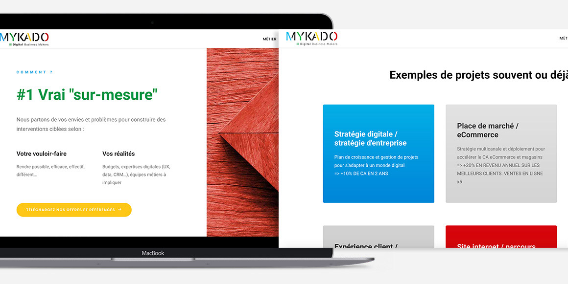 L’ergonomie du site a été travaillée pour offrir un parcours utilisateur fluide et intuitif. Chaque section a été pensée pour guider les visiteurs à travers les différentes offres de Mykado, en leur permettant de comprendre rapidement les services proposés et de trouver les informations essentielles en quelques clics.